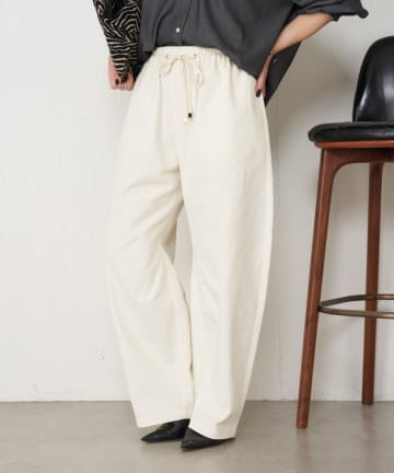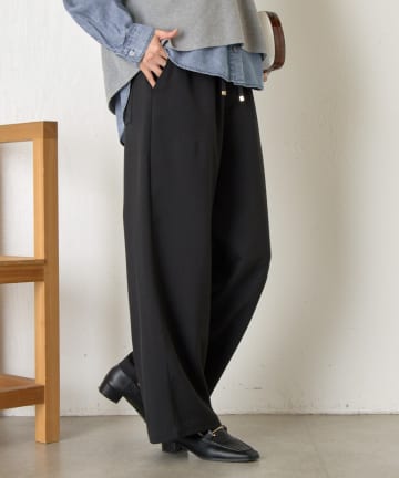 【ゆるっと美シルエット】ウエストギャザーワイドパンツ