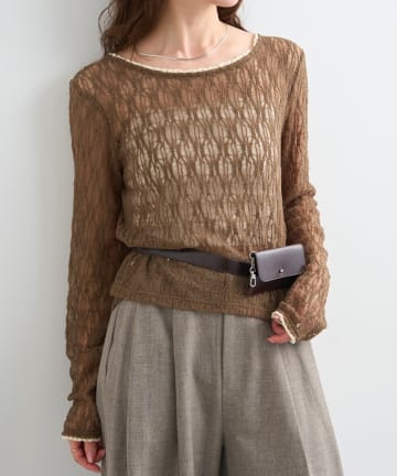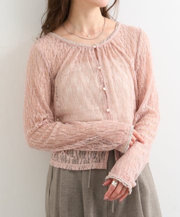 【4色展開】レースシャーリングニット