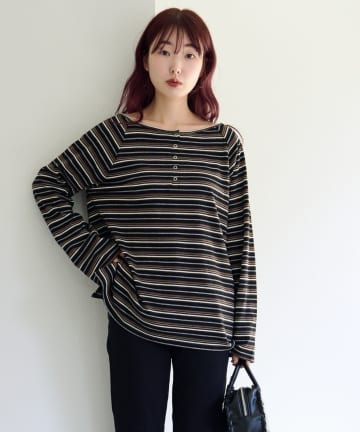 【WHIMSIC/2サイズ展開】ミックスボーダーロングスリーブTシャツ