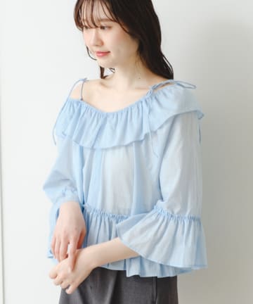 【S.Lサイズ展開】シャーリングシアーブラウス