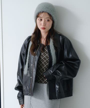 【2サイズ展開/襟2WAY】フェイクレザーショートブルゾン