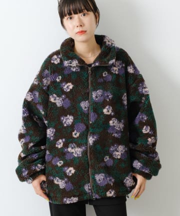 【WHIMSIC】レトロフローラルパターンボアジャケット