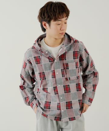 【新色追加/4色展開/ユニセックス】BM チェックフードシャツ