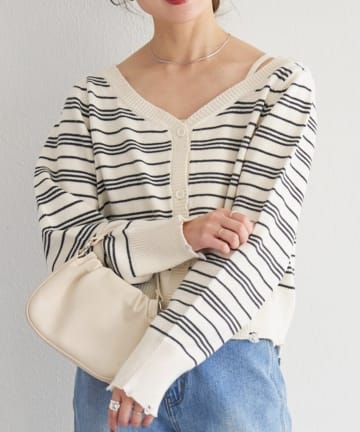 【新色追加/セットアップ対応/前後2WAY】シャギー半袖カーディガン