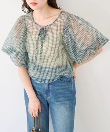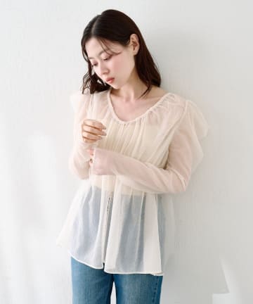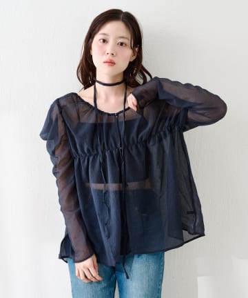 【S.Lサイズ展開】シャーリングシアーブラウス
