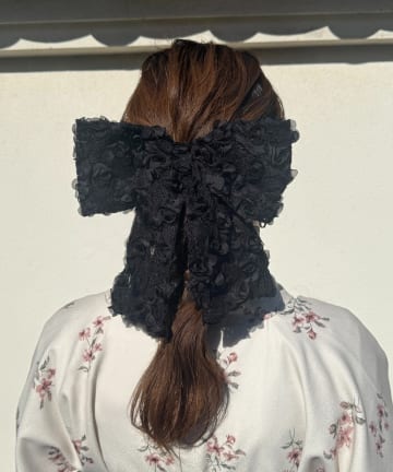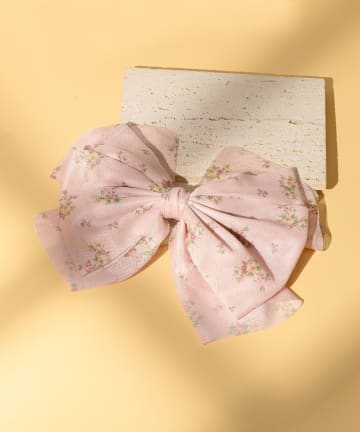 メッシュ小花柄リボンバレッタ
