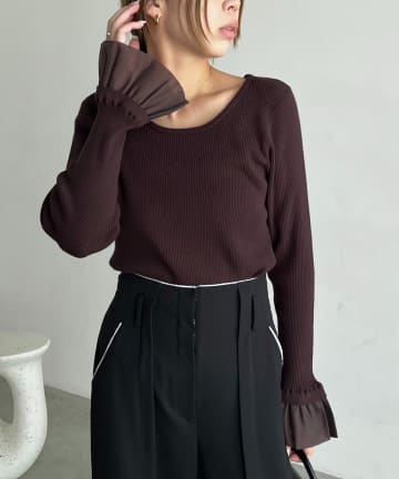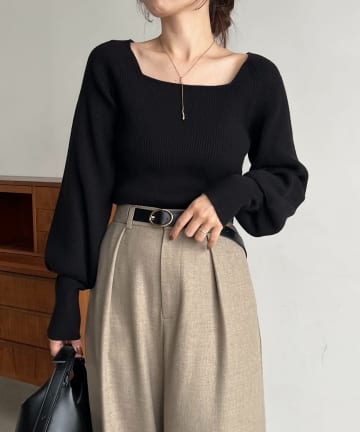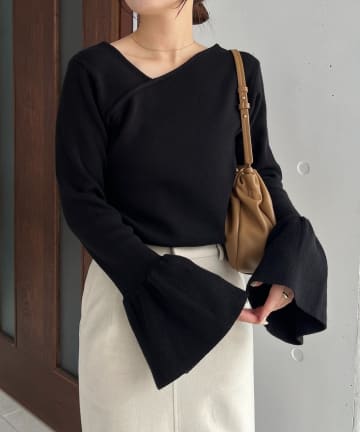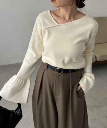 【HAPPY BAG対象】フレア袖アシメネックニット