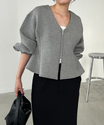 【スタイルアップが叶う/伸縮性◎】ペプラムジップカーディガン