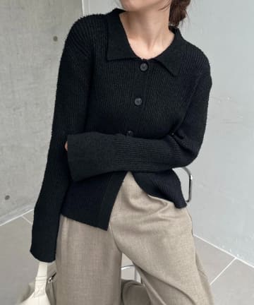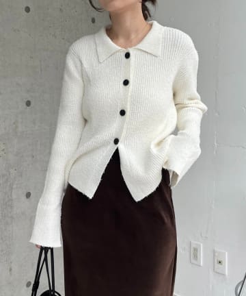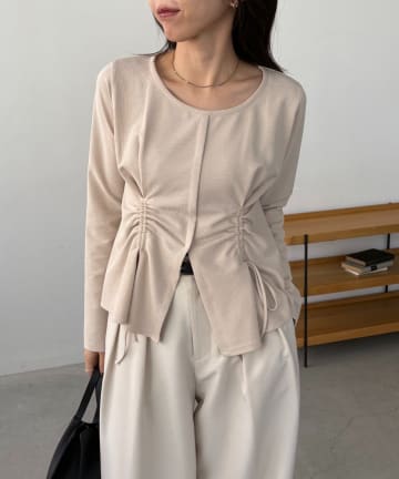 【スタイルアップ効果◎】裾シャーリングリブカーディガン