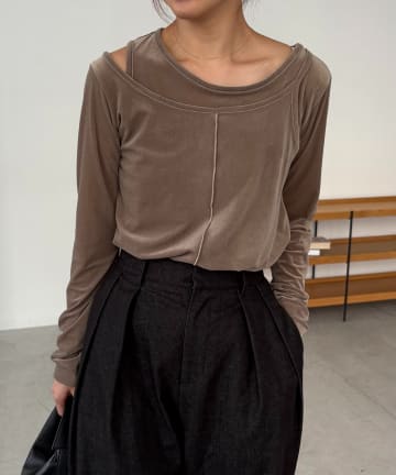 【セット購入割引あり/前後2WAY】2WAYボートネックシアーロンT