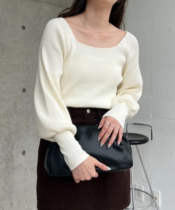 【新色/オフホワイト】【前後2WAY】カーブスリーブリブニット