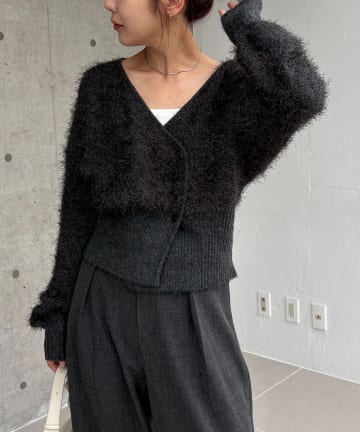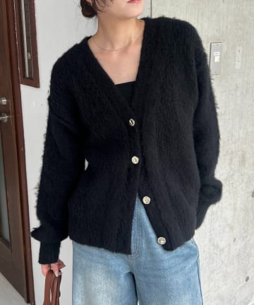 【HAPPY BAG対象】ニュアンスボタンレイヤード風カーディガン