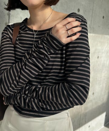 〈C.L〉フリル襟ボートネックTシャツ