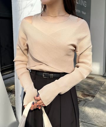 オフショルクロスレイヤードニット