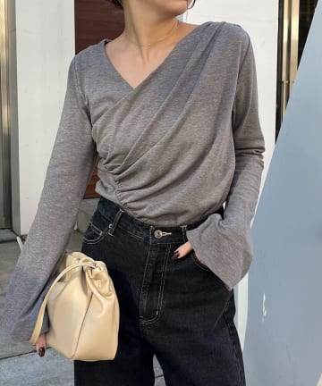 ドレープアシメネックTシャツ