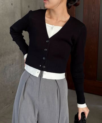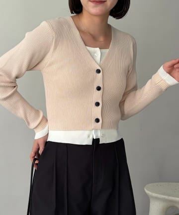 バイカラーレイヤードカーディガン