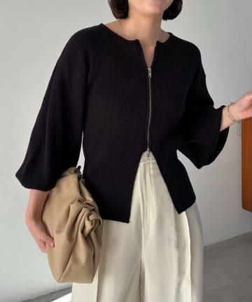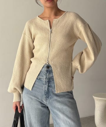 スラブジップパフカーディガン
