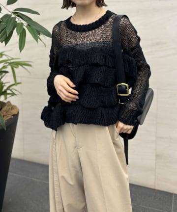 【着映えアイテム】透かし編みフリルデザインプルオーバー