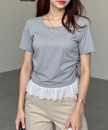 花柄シャーリングレースTシャツ