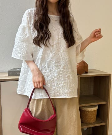膨れジャガードシアートップス