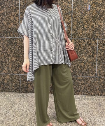 ストライプワイドドルマンシャツ