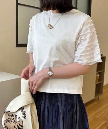 フリルジャガードスリーブTシャツ