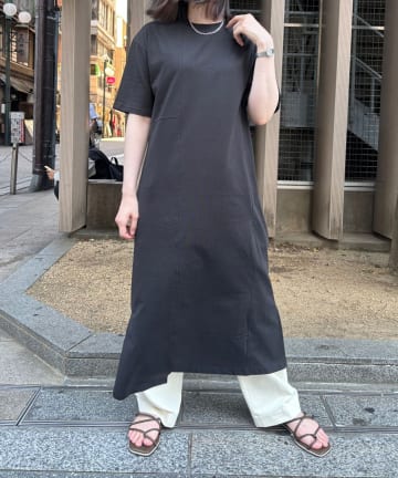 マーセライズ袖タックマキシワンピース