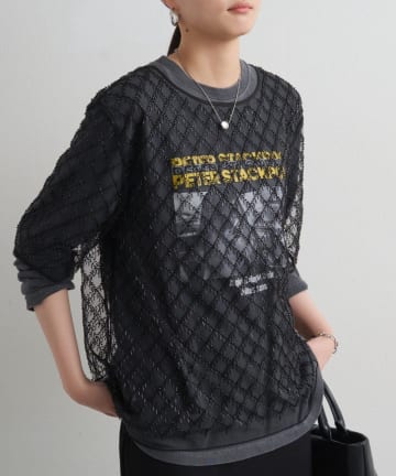 シアーカレッジロゴプリントニット