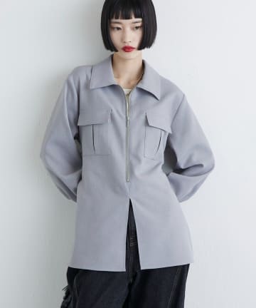 【CHEMISE】 スタンドカラー オンブレーシャツジャケット