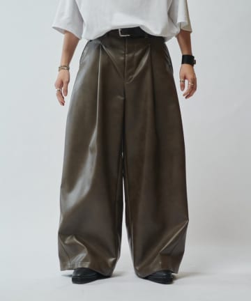 【SURJENT】 シンセティックレザーワイドストレートパンツ