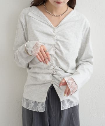 【店頭でも人気/追加決定!》ギャザーレースリブカーディガン