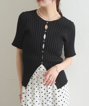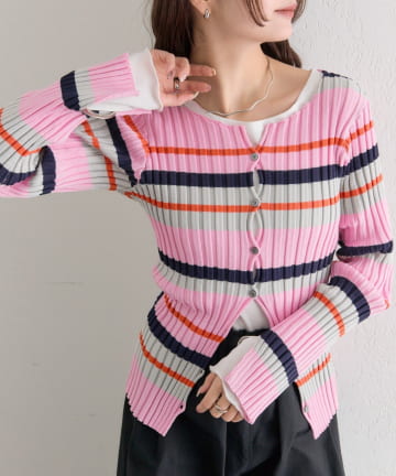 《PNK再予約START!》【細見えするリブ素材】ラウンドスリットリブカーディガン