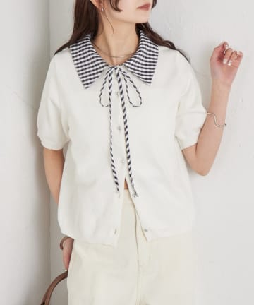 【華奢見えデザイン】ワイドネッククリアボタンカーディガン