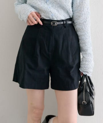【ストライプ柄、無地 / ウエストの配色がポイント】Wベルトパンツ