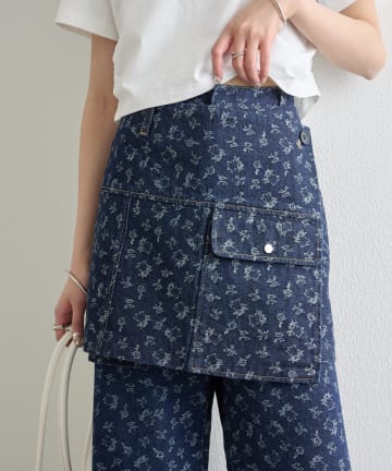 フラワーデニムラップスカート