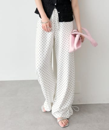 《新色ドット/レースライン》【楽ちんなのに美脚効果◎】裾ドロストスウェットパンツ