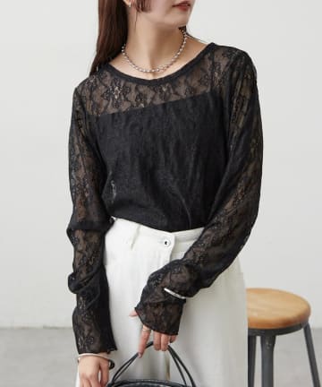 【万能アイテム!肌触りよく伸縮性もあり◎】レースプルオーバー