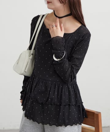 【レイヤードにおすすめ】《BLK/GRY/無地》ドットティアードプルオーバー