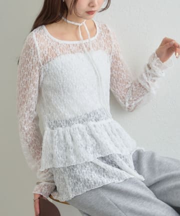 【2025 BEST HIT ITEM】《IVO / レース / ラインストーン》ドットティアードプルオーバー