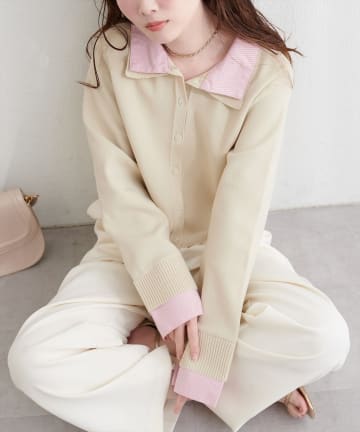 ニット衿レイヤードカーデ