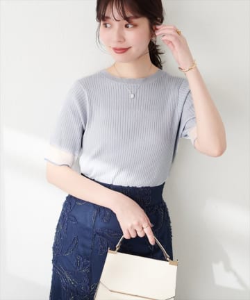 袖口シアー強撚リブニット