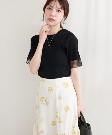 【WEB限定】袖口シアーフレアニット