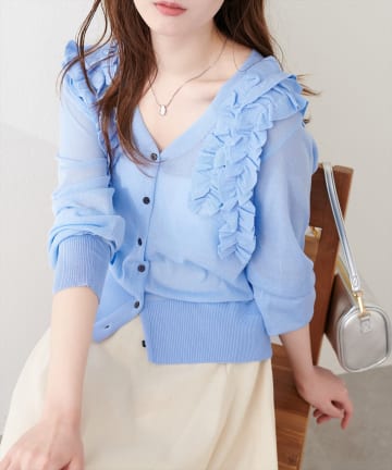 フリルデザインカットカーディガン