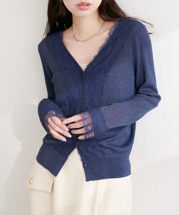 リバーレースVネックカーデ