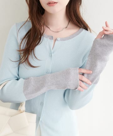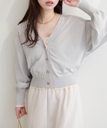 【sherbet line】裾配色ハトメバー釦UVカーディガン
