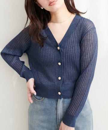 リブシアーニットカーディガン