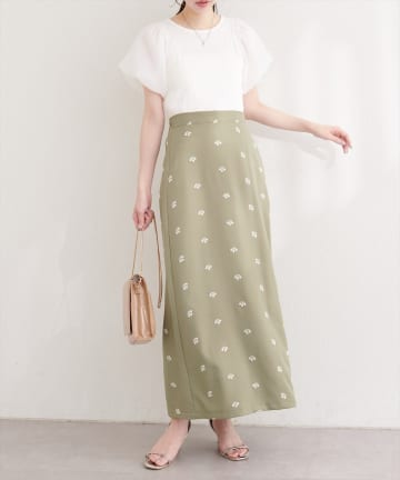 アートフラワーハイウエストフレアスカート