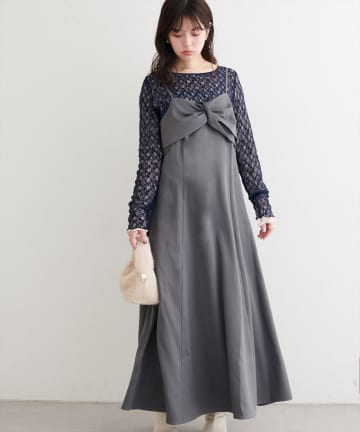 前後2WAYクロスリボンニット×ワンピースSET