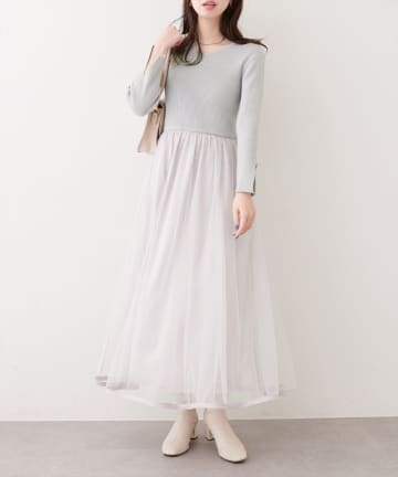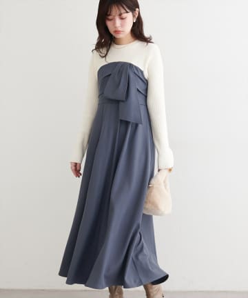 〈mizumami〉リボンチャームニットドッキングワンピース