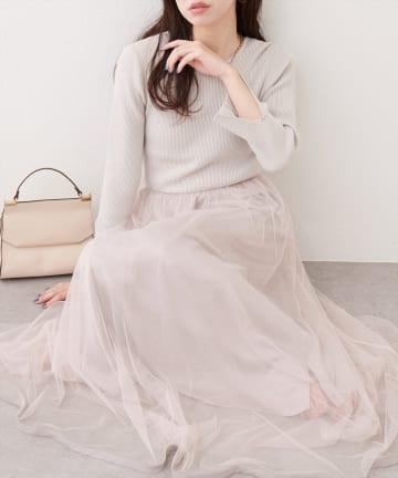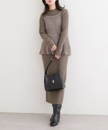 〈osono〉ラメフェザーニットベスト×リブワンピース